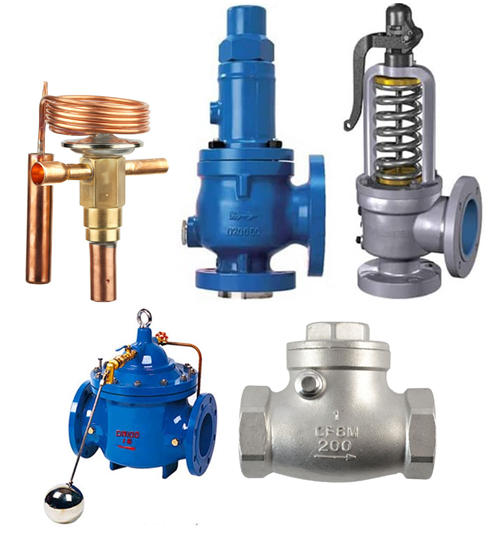설정된 압력, 온도, 레벨, 유량의 방향 등에 따라 자동으로 ON/OFF되는 밸브들 입니다.