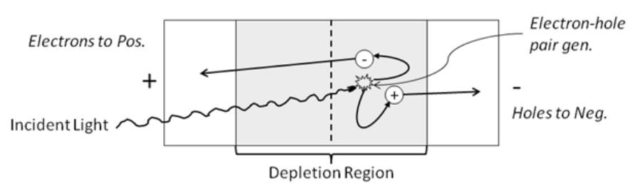 에너지를 가진 광자가 공핍 영역에 충돌하게 되면, 광자의 에너지가 결정 구조로 전달됩니다.