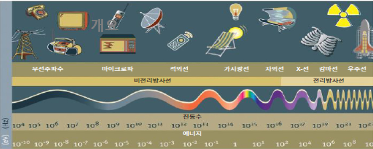 가시광선, 자외선, 적외선, 마이크로파, 극초단파, 라디오파 등등 일상 생활에서 들어본 모든 빛들은 비전리 방사선의 한 종류입니다.