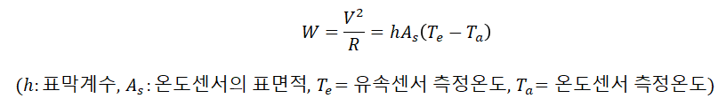 위 식에서 a1, a2, qg는 유체 특성에 의해 지정되는 상수이므로, 전압 V, 저항 R 및 두 온도센서의 측정값을 구하면 질량유속 Vm을 확인할 수 있습니다.