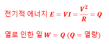 이것을 발생하는 총 열량 식에 대입하여 정리하면 아래와 같이 나타낼 수 있습니다.