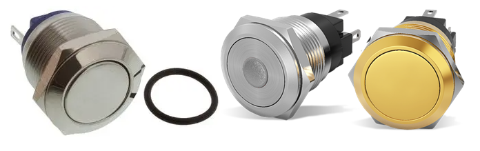 푸쉬버튼은 누르면 동작하는 매우 단순한 구조로 되어 있으며, 형상 및 용도에 따라 몇가지 종류로 나뉘게 됩니다.