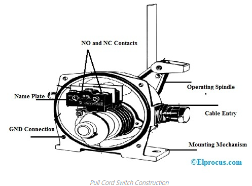 풀코드 스위치는 내부에 감겨있는 스프링에 와이어가 연결된 형태이며, 와이어를 당겨 스프링이 회전하게 되면 내부에 장착된 Limit Switch를 동작시키게 되어 있습니다.