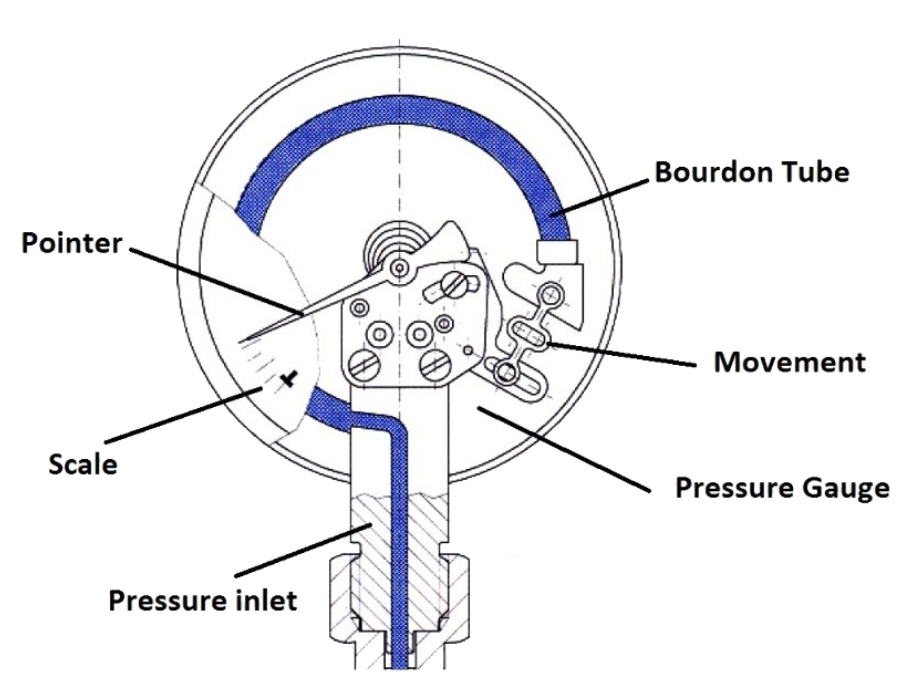 부르동관 내부는 비어있으며, 압력 매체가 부르동관을 채워 압력을 가하게 되면 부르동관이 팽창하여 끝부분이 이동하게 됩니다.